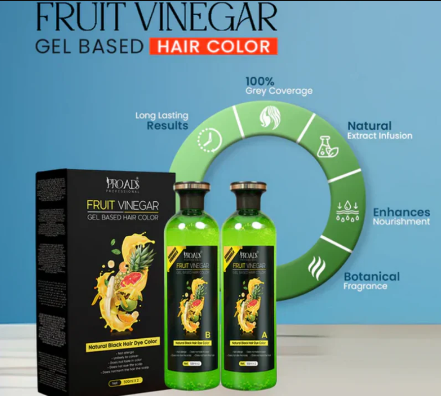 Enhance your hair care routine with Fruit Vinegar Gel-Based Hair Color, formulated with natural ingredients to provide vibrant color and gentle nourishment for your hair and scalp.